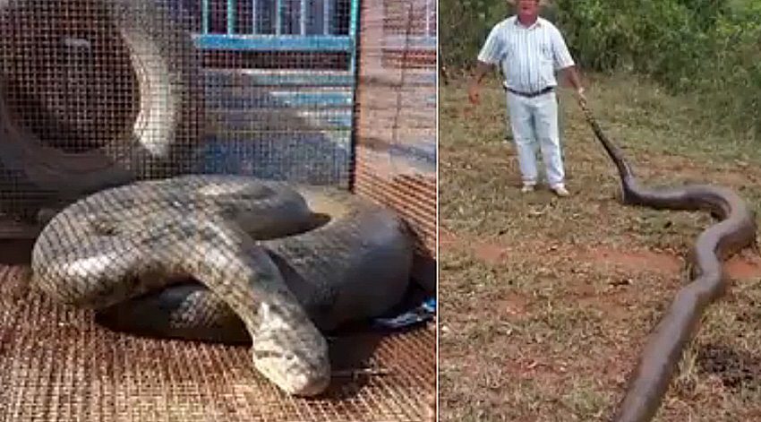 Cobra sucuri de 7 metros é capturada em fazenda de Caçu