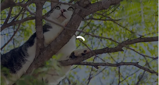 Gato 'medroso', que não desce há 8 meses de árvore, ganha casa e vira atração turística em cidade de MG