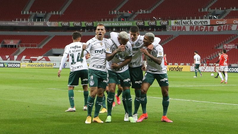 Com um a menos, Palmeiras marca no fim e supera o Inter no Beira-Rio