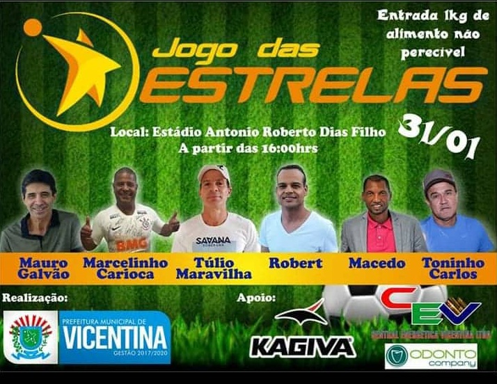 Regiaonline Esportivo: Em Vicentina, Jogo das Estrelas reunirá celebridades renomadas do Futebol Nacional.