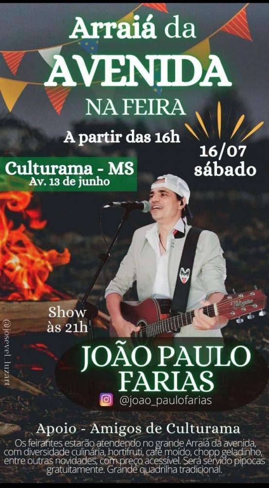 Regiaonline Sabadão Musical Ao Vivo: João Paulo Farias é a atração principal no Arraiá da Avenida em Culturama.