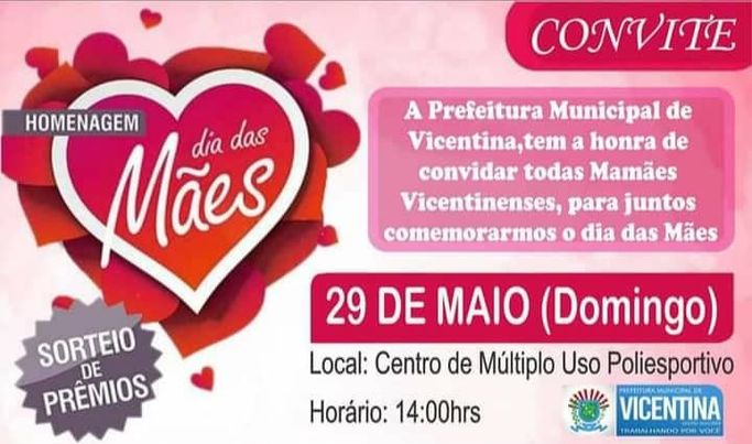 Regiaonline Comemorativo: Homenagem Dia das Mães será realizado neste domingo em Vicentina.