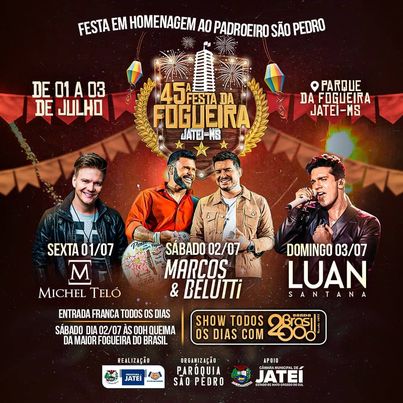 Regiaonline Evento: 45ª Festa da Fogueira de Jateí terá Michel Teló, Marcos e Belutti e Luan Santana em Julho.