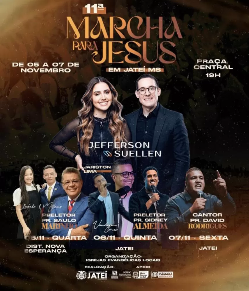 Jateí se prepara para a 11ª Marcha para Jesus com grandes atrações musicais e preletores renomados