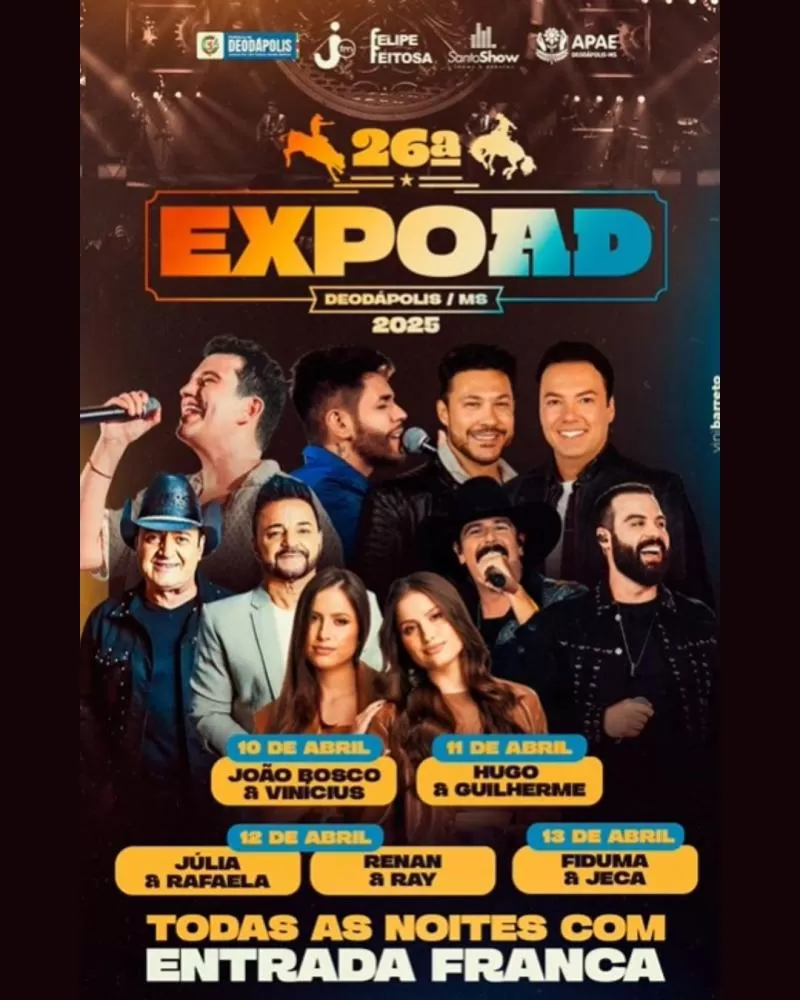 Regiaoonline Evento: Em Deodápolis, Expoad 2025 inicia nessa quinta-feira com show de João Bosco e Vinícius.