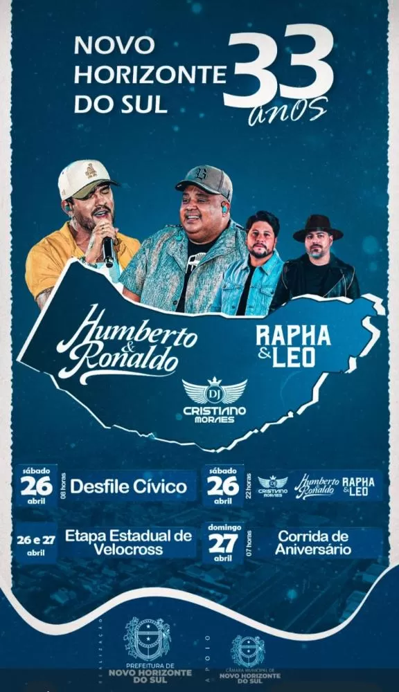 Regiaoonline Eventos: Com Show de Humberto e Ronaldo, Novo Horizonte do Sul comemora aniversário.