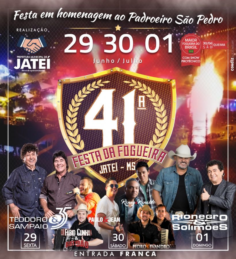 Festa da Fogueira de Jateí terá shows de Teodoro & Sampaio e Rio Negro & Solimões