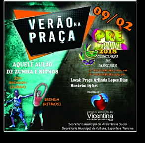 Regiaonline Cultura, Lazer e Diversão: Projeto Verão na Praça promove Concurso de Máscaras Carnavalescas na próxima sexta.