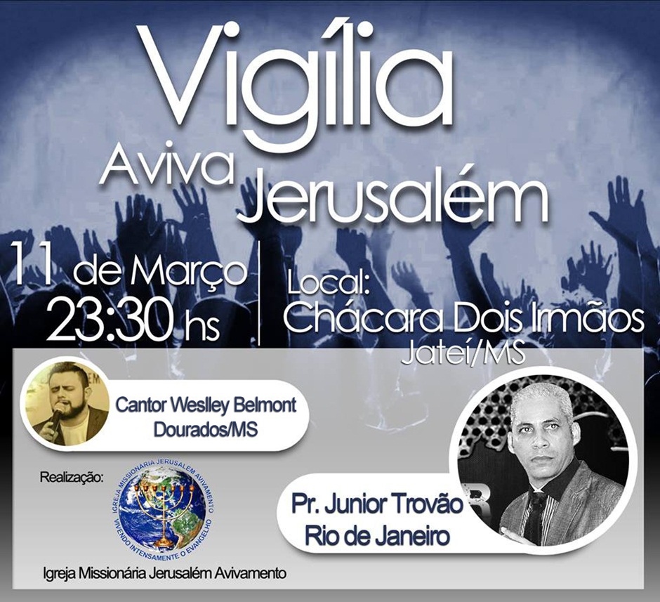 Vem aí grande vigília Aviva Jerusalém 11 de março de 2017 na chácara dois irmãos em Jatei/MS