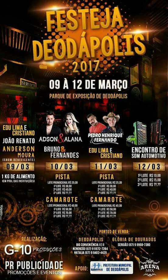 Confira os shows que começam nesta quinta-feira dia 09 no parque de exposições em DEODÁPOLIS