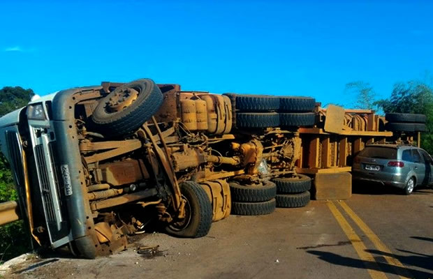 Caminhão tomba em cima de ponte e uma pessoa morre em Itaporã