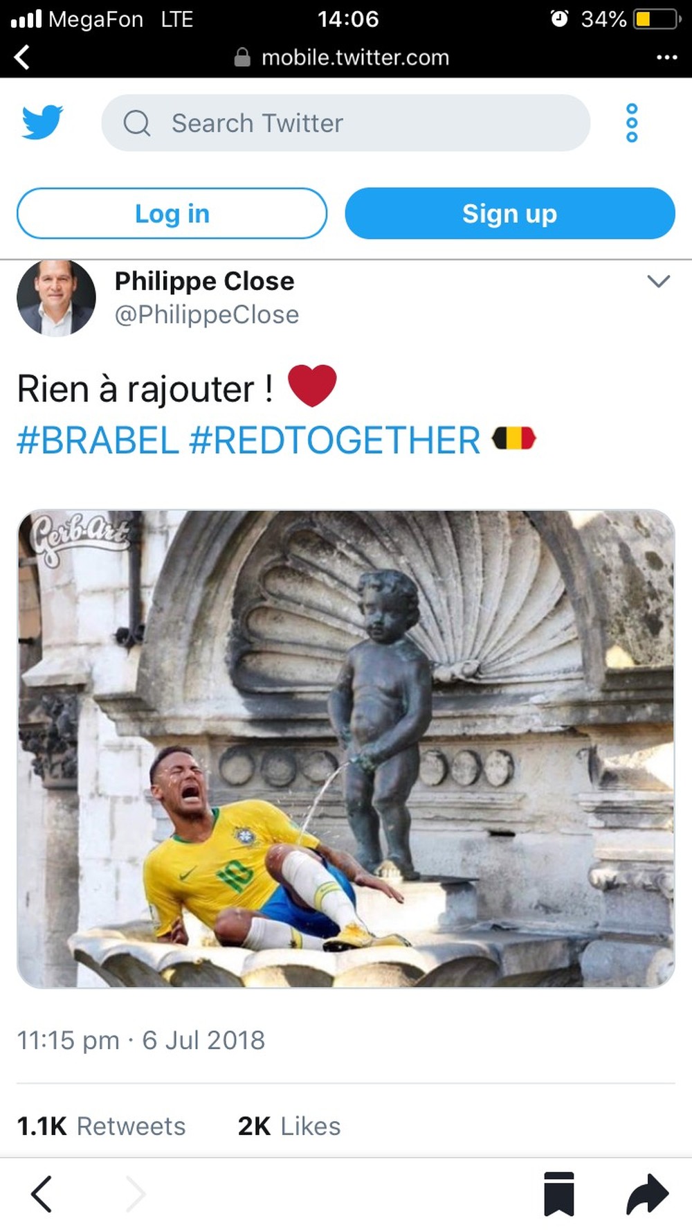 Prefeito de Bruxelas cria polêmica ao postar imagem de estátua belga famosa urinando em Neymar