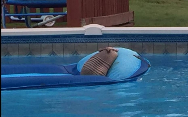 Tatu invade piscina de casa nos EUA