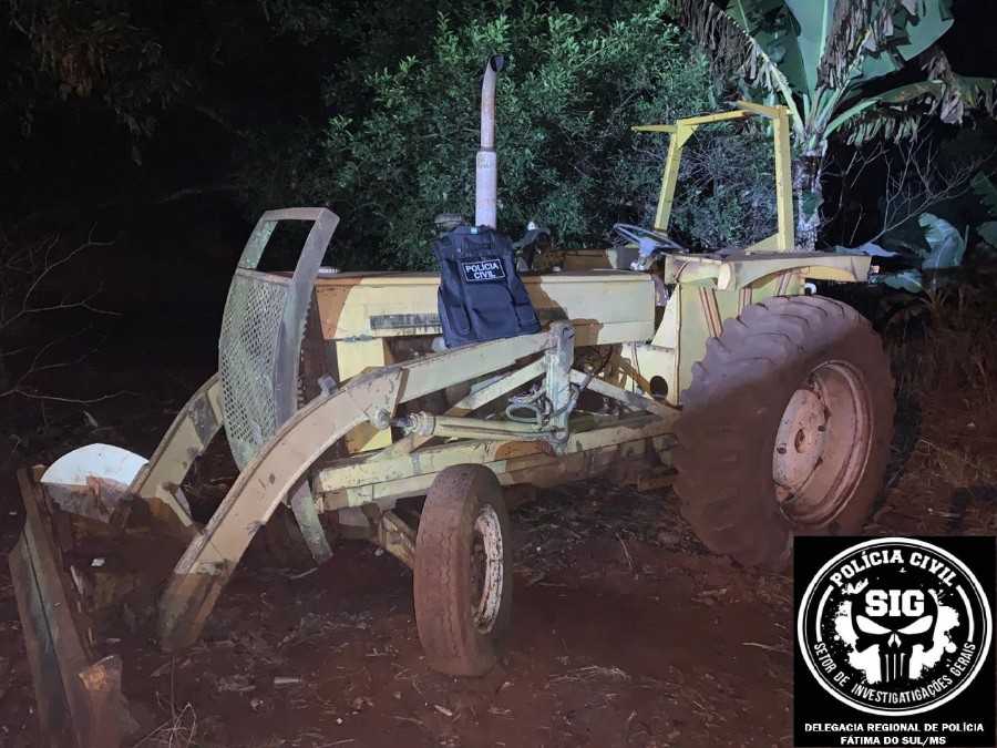 Os policiais chegaram até o local após receber informações de que um trator Massey Fergunson 265 e uma carreta agrícola, furtados no município de Jateí em abril passado, estariam no distrito de Vila Vargas, no local os policiais civis localizaram um trator da marca CBT, com registro de furto em Caarapó e uma carreta agrícola. Os ve ículos estavam na posse de um mecânico de tratores que alegou ter comprado as máquinas agrícolas de um "amigo" que reside em Dourados.