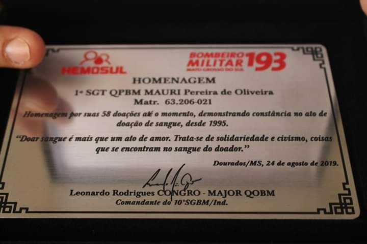 Fátima do Sul - O Corpo de Bombeiros Militar em Fátima do Sul-MS, juntamente com o Hemocentro Regional de Dourados-MS e o Hospital da SIAS em Fátima do Sul/MS realizaram no último dia 24 de agosto de 2019 (sábado), a Campanha de Doação de Sangue no Município de Fátima do Sul-MS.
