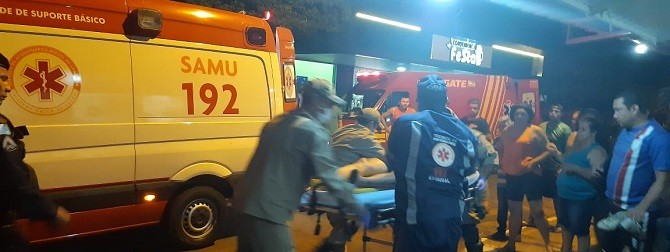 No local com apoio da uma equipe do SAMU o resgate prestou socorro a um homem que segundo informações estava em uma lanchonete quando outro chegou atirando.