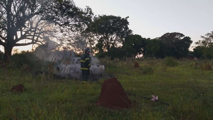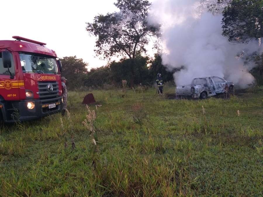 Vídeos e fotos obtidos pelo jornal Dourados News mostram o exato momento em que uma equipe do Corpo de Bombeiros controla o fogo ateado em um veículo modelo VW Saveiro.