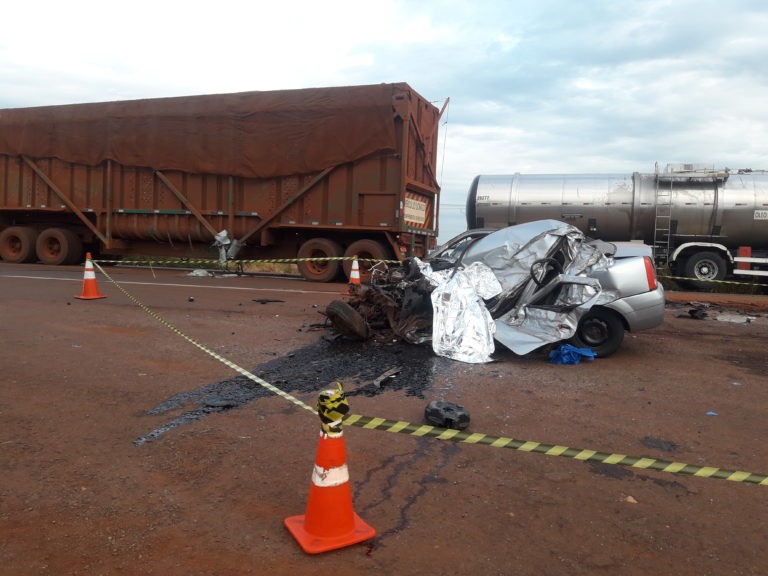 Grave acidente foi registrado por volta dss 5h desta segunda-feira (6) na BR 163 altura do Km 351 entre Rio Brilhante e Nova Alvorada do Sul matou duas pessoas.