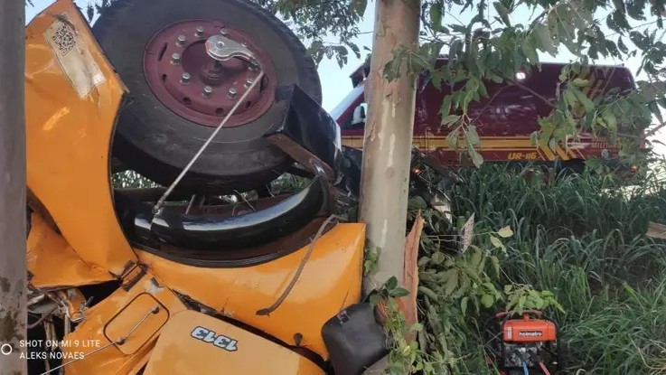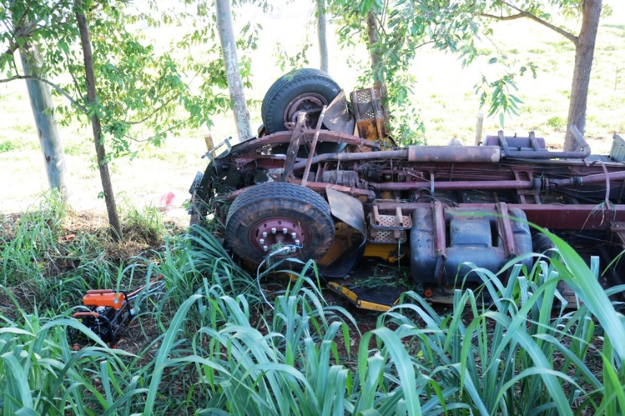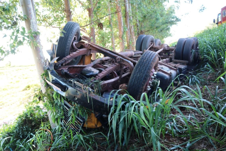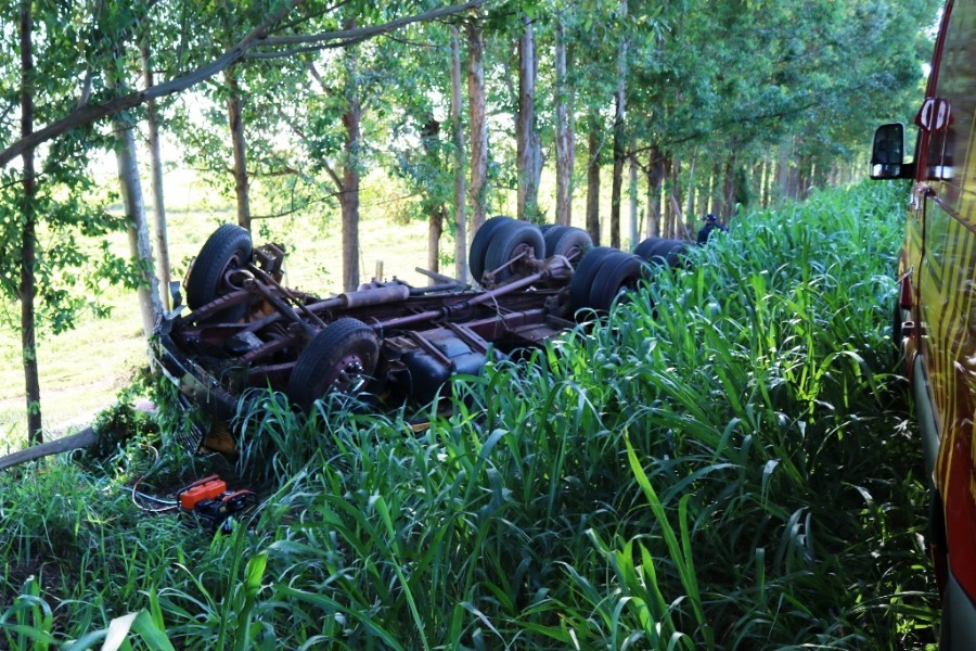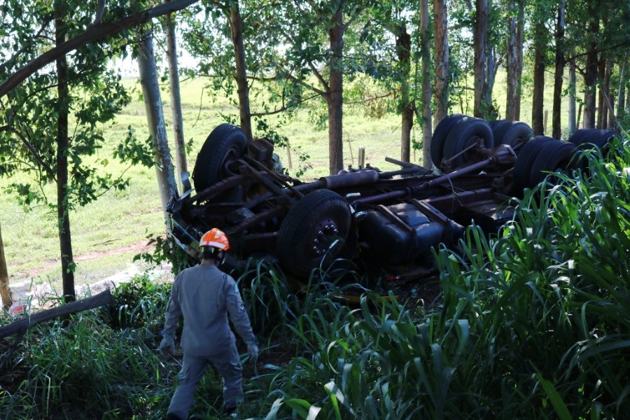 De acordo com as primeiras informações da polícia, o motorista perdeu o controle do caminhão, tombou e bateu em uma árvore de eucalipto. A cabine do veículo ficou destruída.