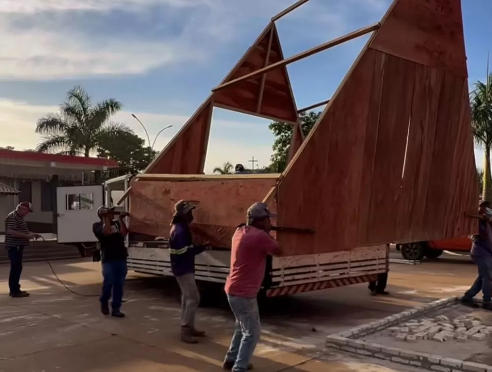 Servidores já trabalham na estrutura de madeira, que está sendo instalada na região central da cidade.