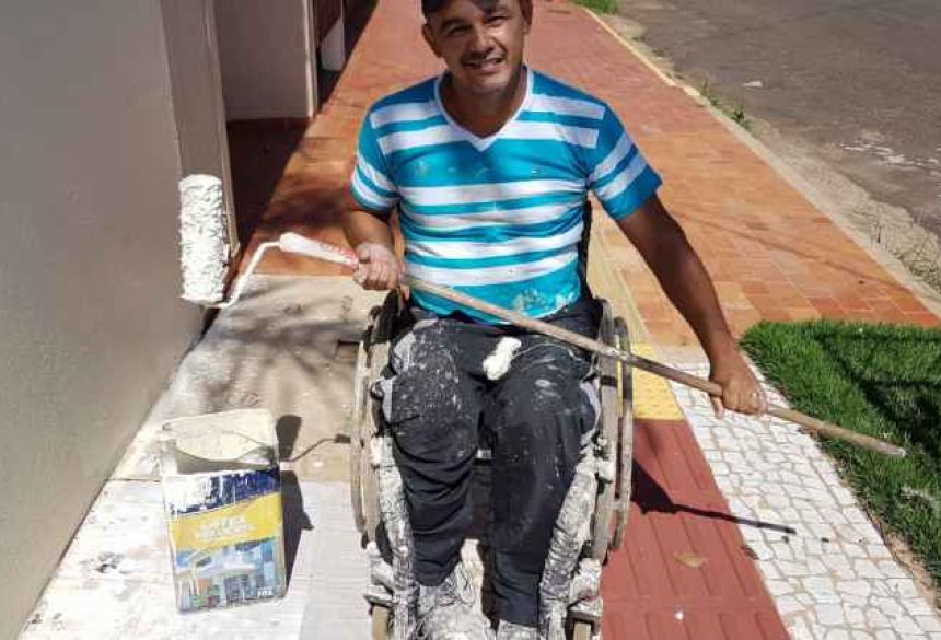 Bala perdida mudou para sempre vida de pintor que agora trabalha em cadeira de rodas