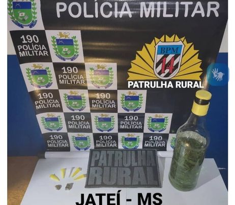 Policiais Militares da Patrulha Rural apreendem entorpecentes nas imediações da antiga farinheira em Jateí-MS.