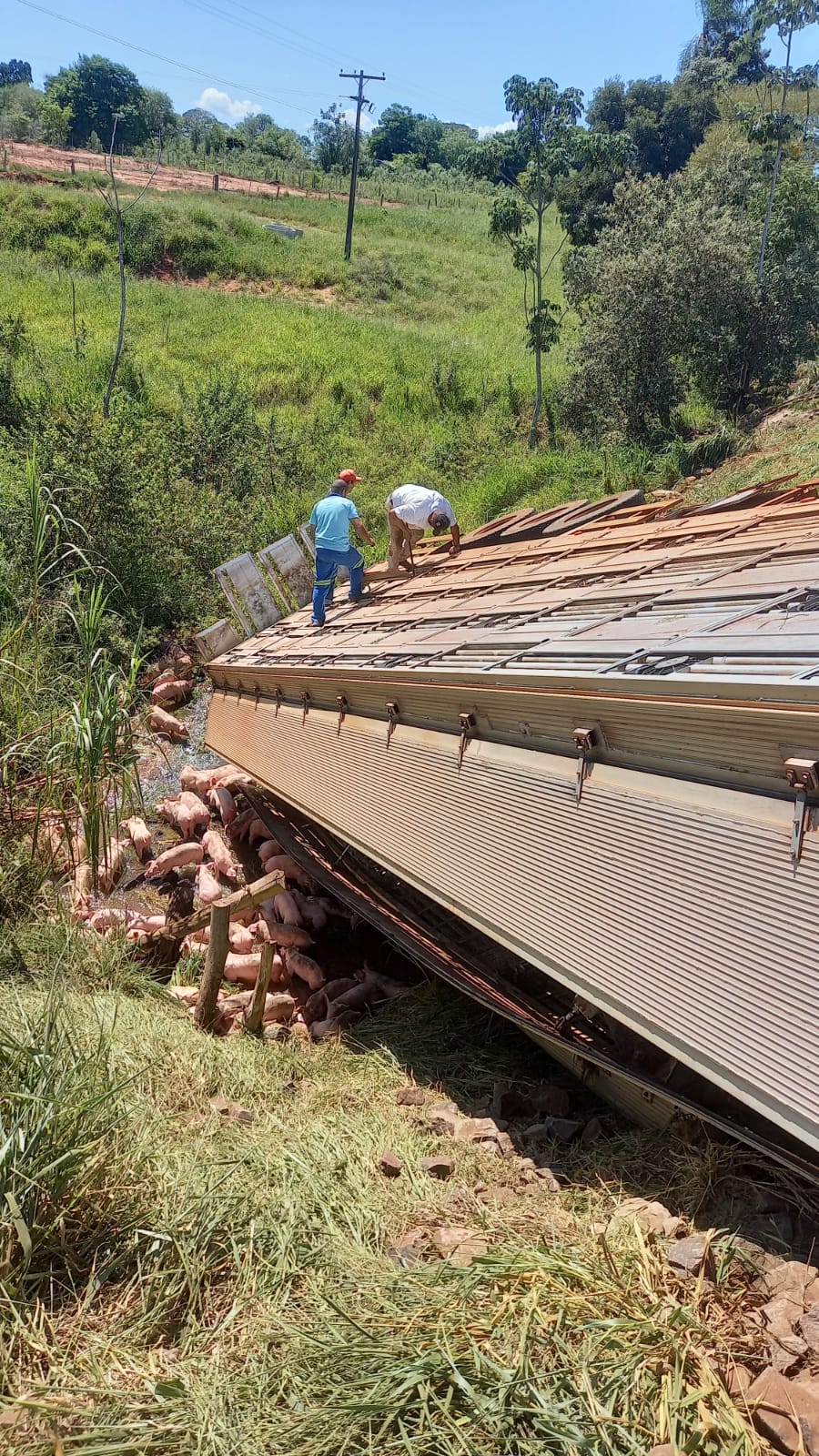 Regiaonline Plantão Acidente: Caminhão com suínos tomba entre Glória de Dourados e Jateí.