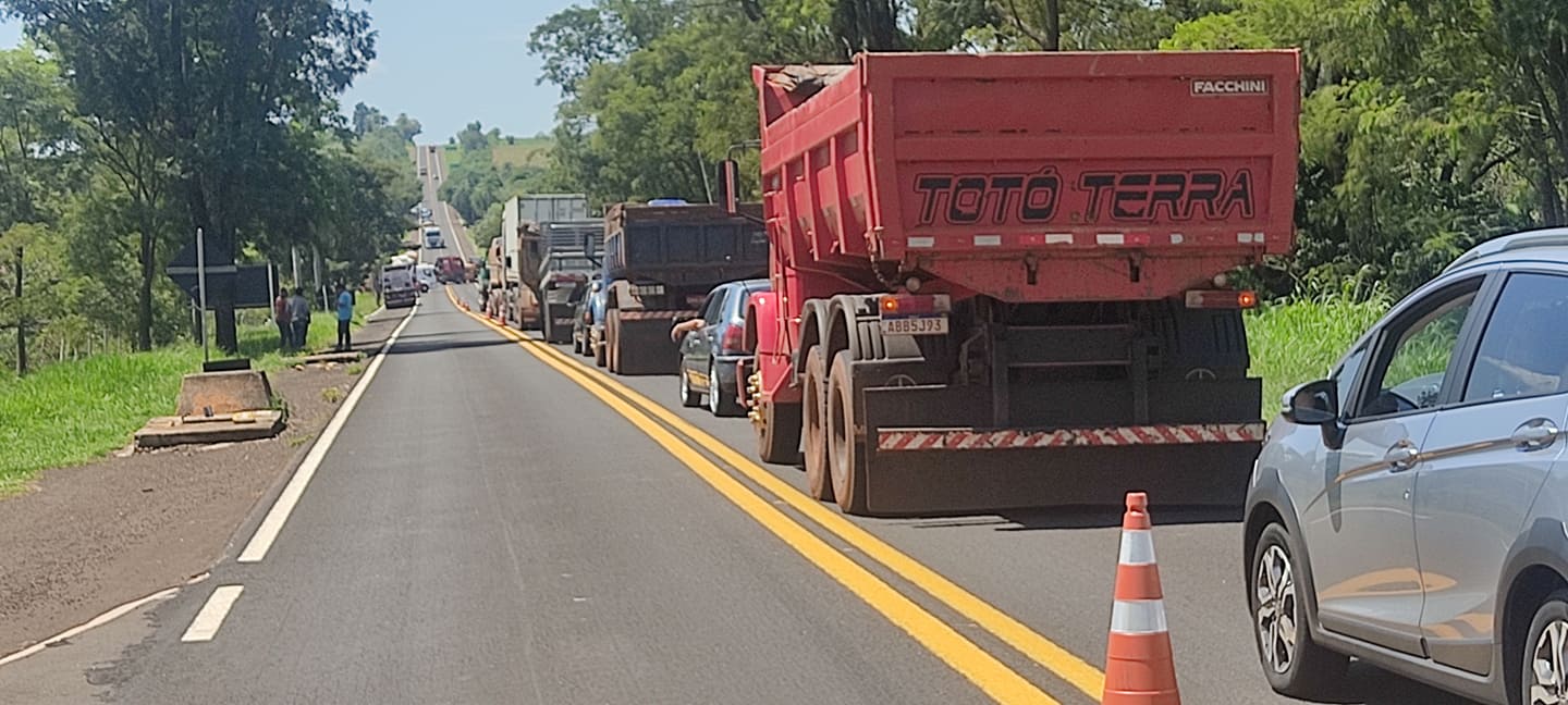 Regiaonline Trânsito: Tráfego de veículo fica interrompido por mais de 1h para remoção de carreta tombada entre Glória de Dourados e Jateí.