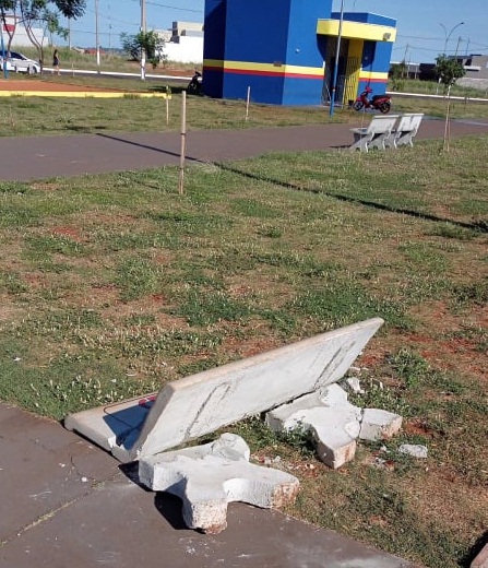 Vândalos danificam bancos na praça de eventos em Ivinhema