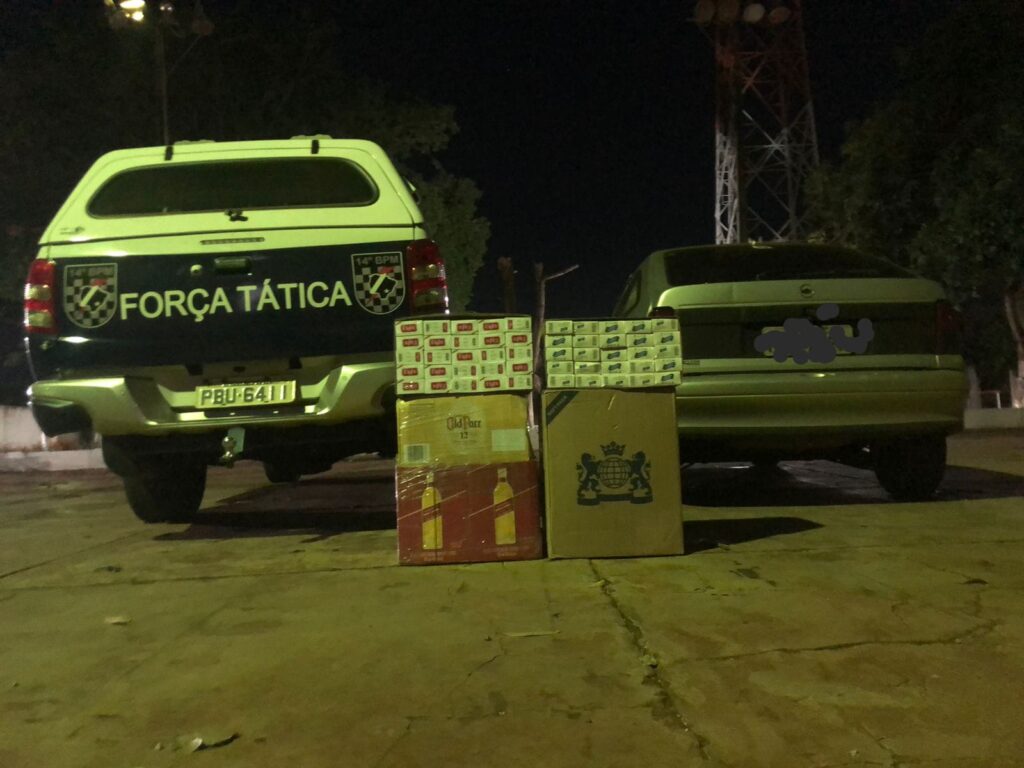 Em Fátima do Sul, Policiais Militares da Força Tática apreendem cigarros e bebidas de origem estrangeira.