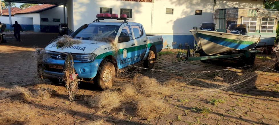 PMA mantém vigilância de cardumes no rio Dourados e apreende 16 redes de pesca, três cordas de espinheis com 60 anzóis e 208 anzóis de galho