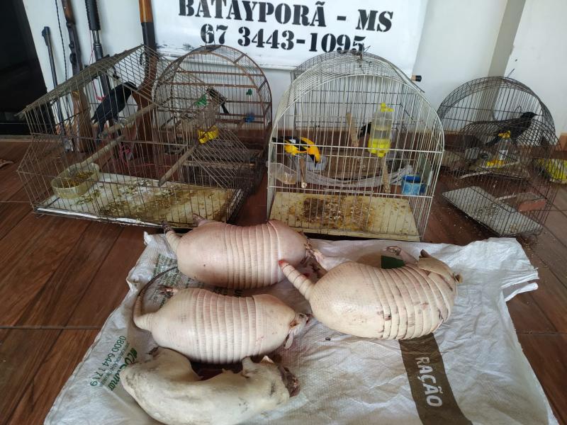 PMA de Batayporã prende e autua em R$ 36,5 mil dois caçadores e apreende três tatus e uma cutia abatidos, seis aves silvestres em cativeiro e quatro espingardas de caça e munições