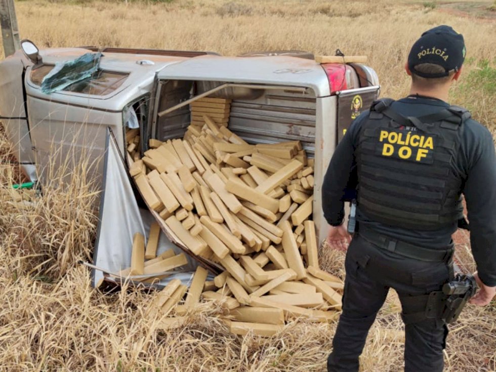 Perseguição termina com traficante preso às ferragens após capotar caminhonete com 1,2 t de maconha