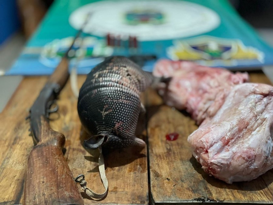PMA surpreende caçador com tatu abatido, carne de sucuri, armas e munições ilegais