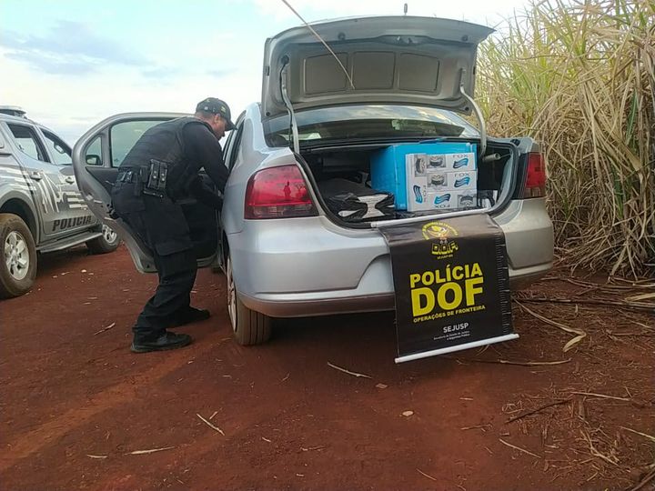 Veiculo com placas de Deodápolis foi apreendido com produtos contrabandeados do Paraguai pelo DOF durante a Operação Hórus