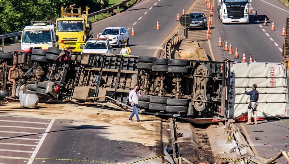 Motorista embriagado, tomba caminhão na BR-163 em Campo Grande