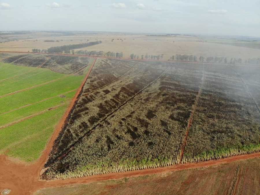 Lixão pega fogo e chamas atingem plantação de cana em Nova Andradina
