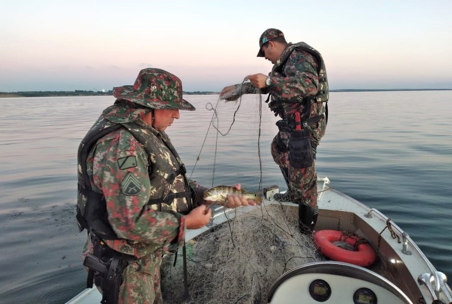 No rio Paraná, 'Lago da Usina Sérgio Motta' 25 redes de pesca são apreendidas e 11 kg de peixes presos às redes são soltos