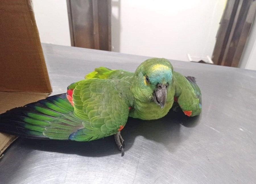 Papagaio que não era domesticado é resgatado com suspeita de ter sido envenenado