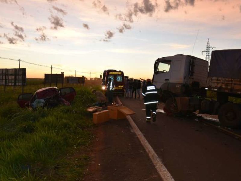 Colisão frontal entre carro e carreta mata ocupante mata jovem de 19 anos em MS