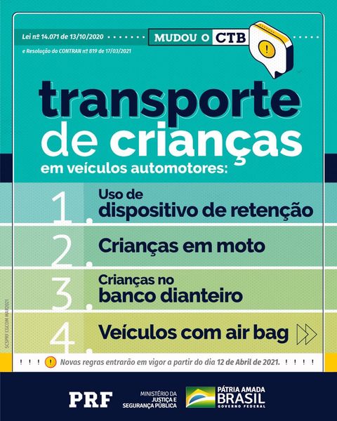Novas regras para o transporte de crianças em veículos automotores entrarão em vigor nesta segunda-feira (12).