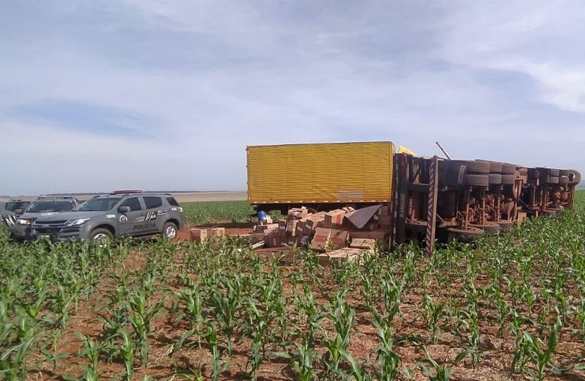 Carreta tomba com 40 mil pacotes de cigarros do Paraguai e é apreendida pelo DOF durante a Operação Hórus