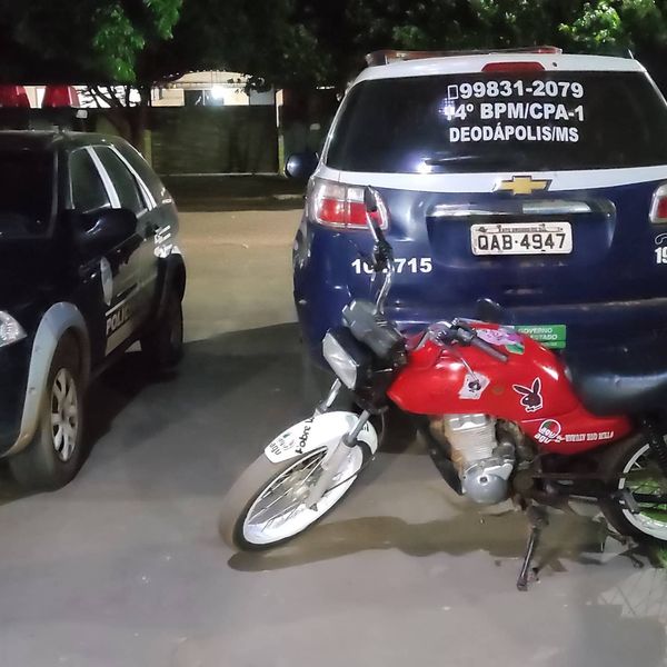 MOTO FURTADA DO PÁTIO DO DETRAN DE DEODAPOLIS É RECUPERADA PELA PM E PC.