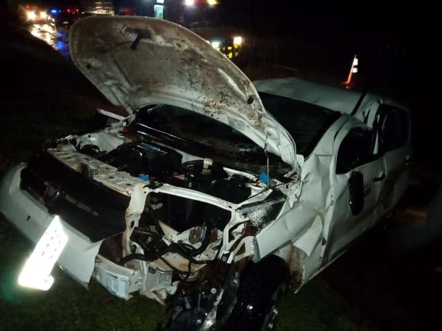 Carro sai da pista em curva, bate em placa e homem morre na hora