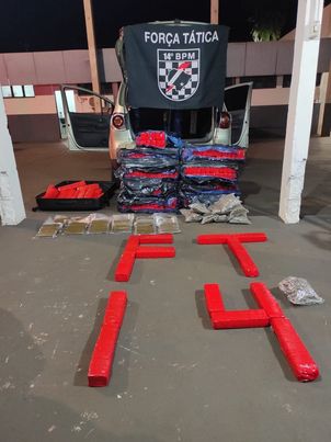 Força Tática do 14º BPM apreende veículo carregado com mais de 200 kilos de entorpecente.
