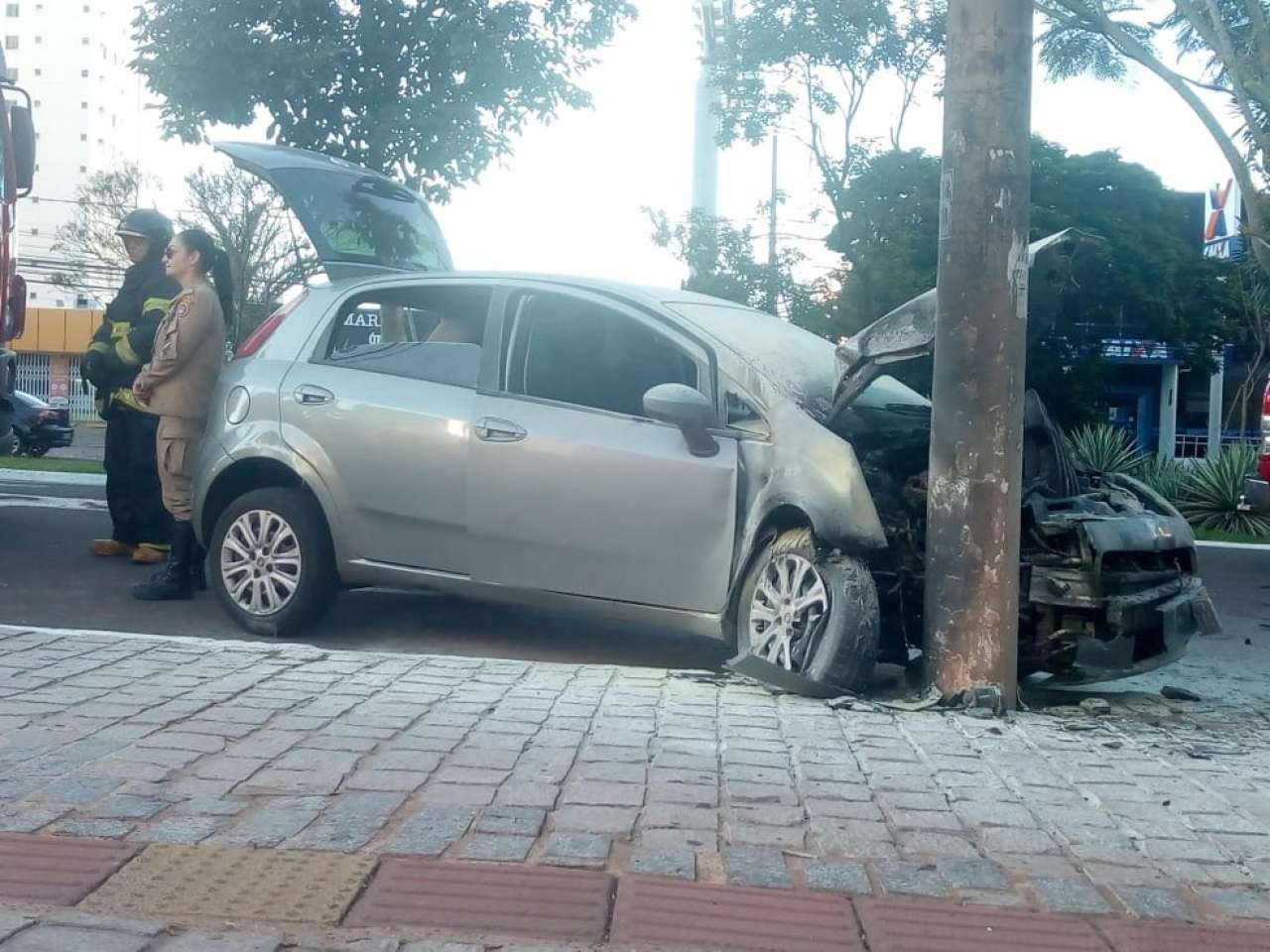Bêbado, motorista bate carro em poste e vai parar na delegacia