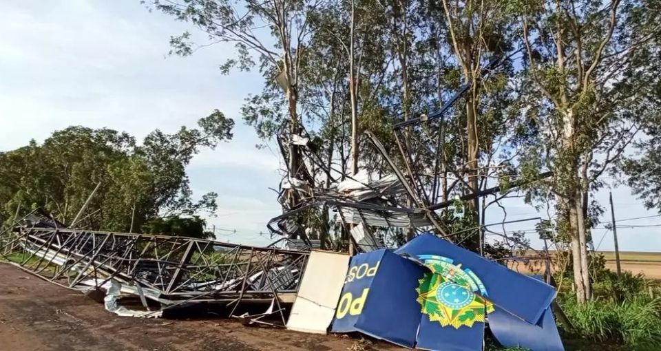 Tempestade destrói cobertura da PRF em São Gabriel do Oeste