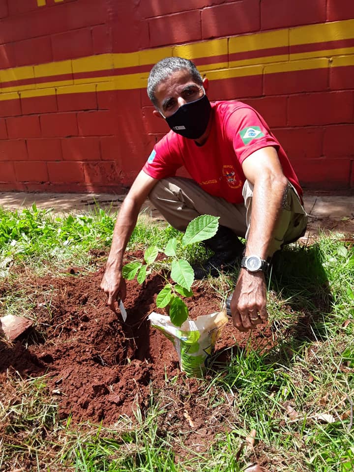 Corpo de Bombeiros Militar em Ivinhema planta mudas de ipê-roxo-bola