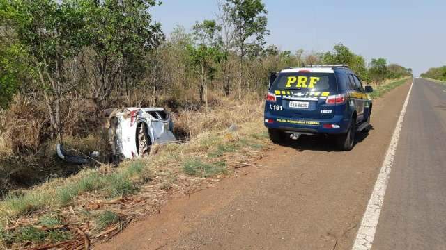 Traficante foge, polícia atira de fuzil em pneus e carro capota na BR-262