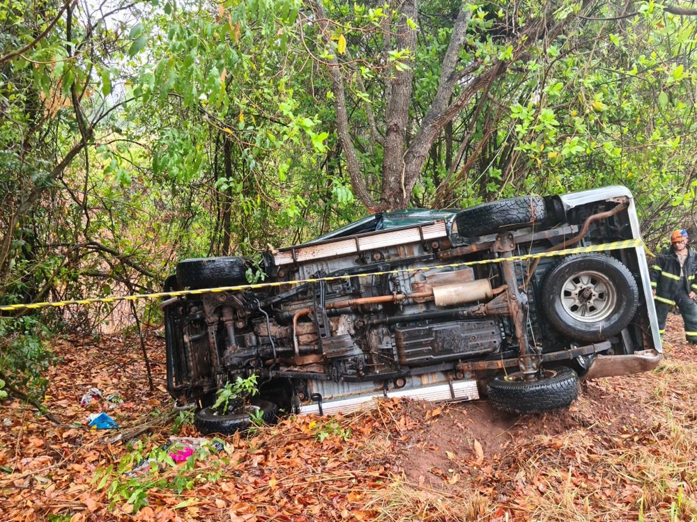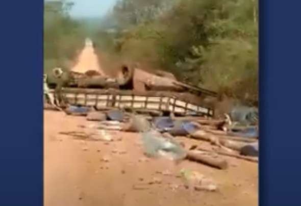 Caminhão com arame e madeira tomba e mata duas pessoas na MS-243